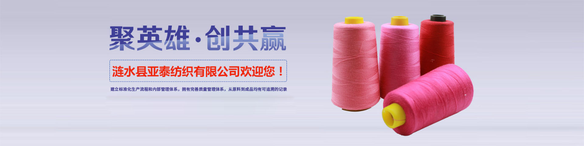 漣水縣亞泰紡織有限公司位于江蘇漣水縣,公司專業(yè)生產(chǎn)各種縫制線、織帶織布線、漁網(wǎng)線、輪胎線、風箏線等產(chǎn)品,廣泛應用于服裝、鞋帽、皮革、箱包、家紡、帳篷、漁業(yè)、勞保用品、運動用品、特種行業(yè),材質(zhì)有滌綸、錦綸、氨綸等,滿足各行各業(yè)對線的需求。公司始創(chuàng)于1998年,擁有整套先進的染色制線設(shè)備,專業(yè)的技術(shù)管理人員,先進的生產(chǎn)工藝。歡迎您光臨指導、洽談合作!